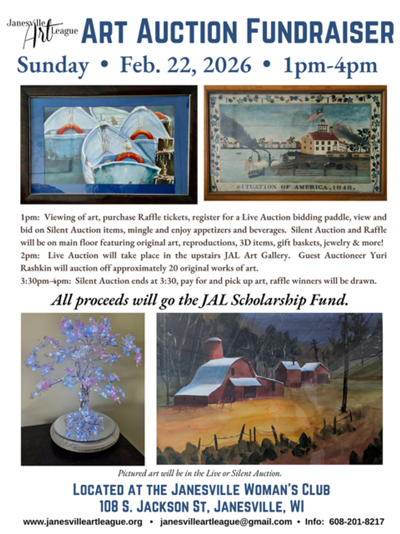 The Janesville Art League is an active non-profit organization open to artists and art supporters to create and enjoy art in our community.